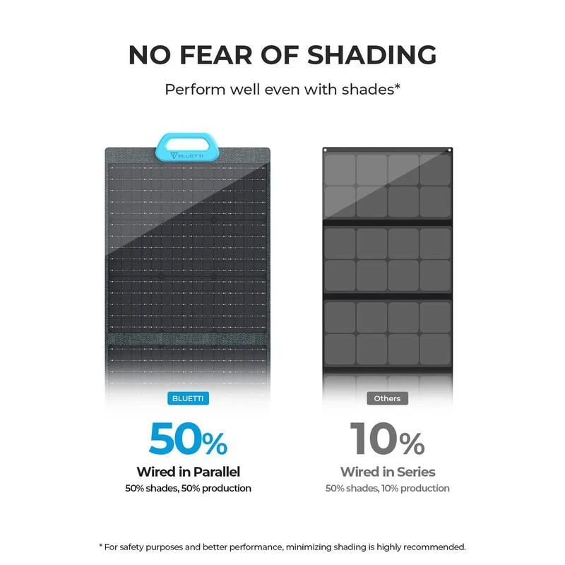 Avec un rendement de conversion élevé de 23,4 %, BLUETTI PV200 peut convertir la lumière du soleil en énergie solaire. Connectez-le simplement et laissez-le alimenter vos générateurs solaires.